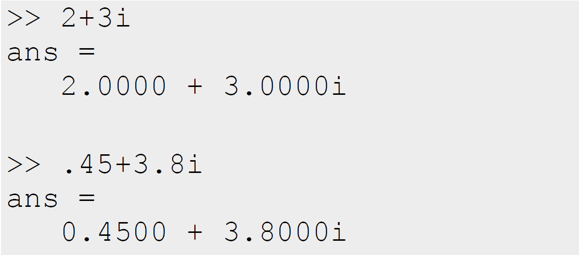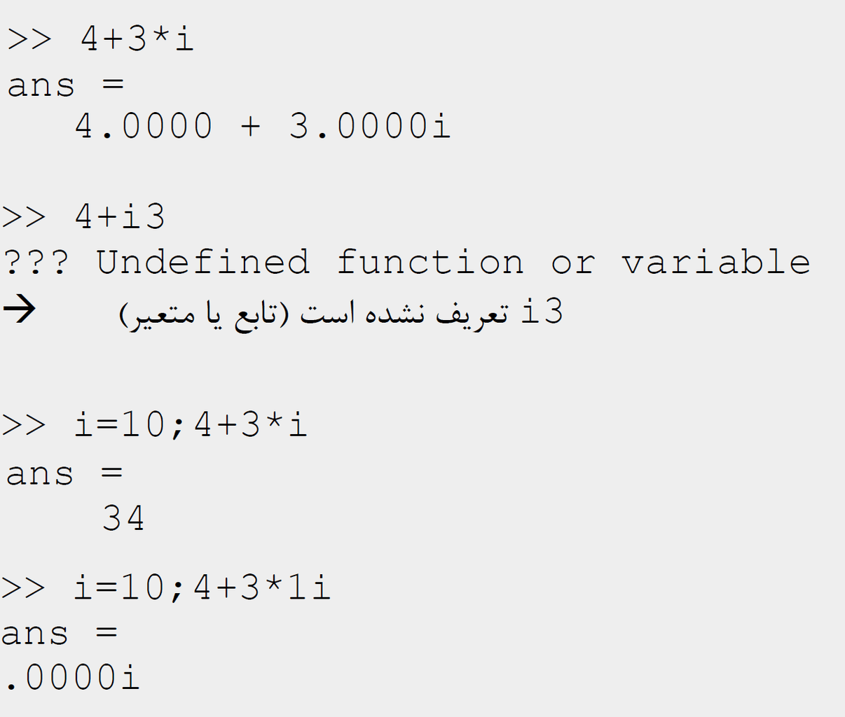 استفاده کنیم نتیجه آنچه که انتظار داریم نخواهد بود. برای جلوگیری از وقوع این اشتباه بهتر است اگر از فرم a+b*i استفاده میکنیم بجای i وj از عبارتهای معادل i1 وj1 استفاده کنیم، یعنی: