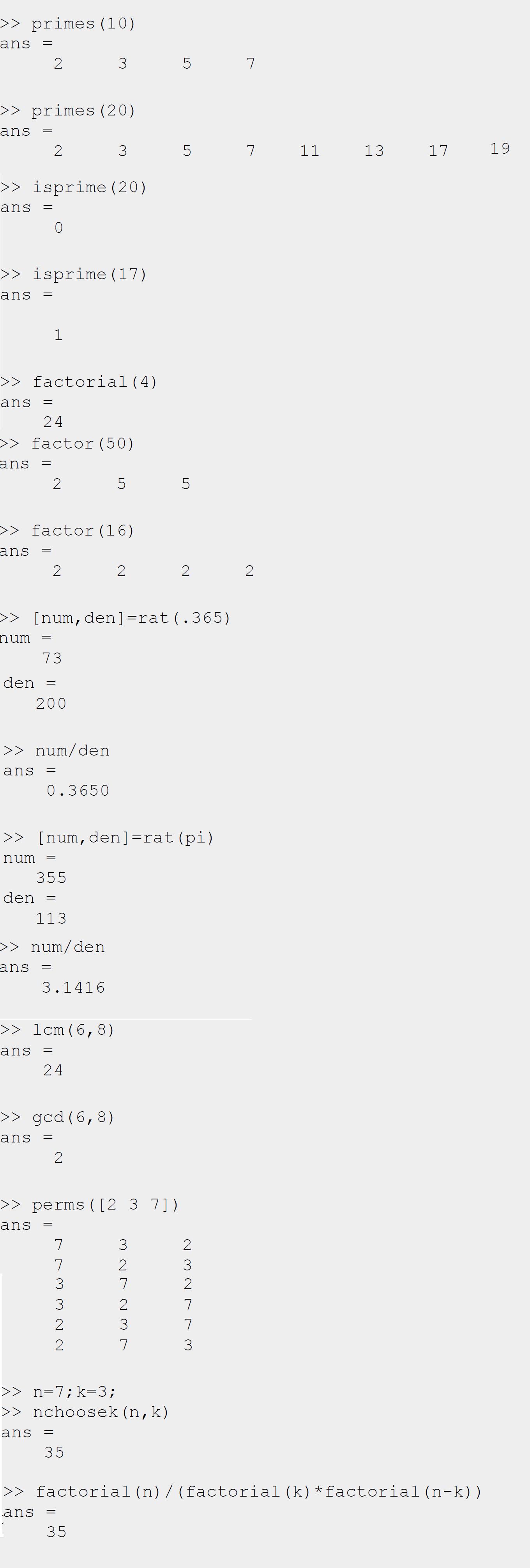 (isprime(a: بررسی میکند که آیا a اول است (1) یا خیر (0).
