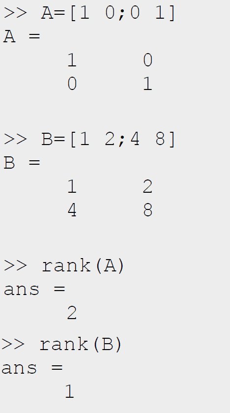 (rank(A: رنک یک ماتریس تعداد سطرها و یا ستونهایی که از یکدیگر مستقل خطی هستند.