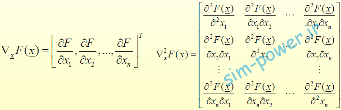 • بردار گراديان و ماتريس هسيان تابع F به ترتيب برابرند با:
