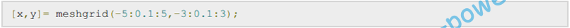 [x, y] = meshgrid(-5: o . 1: 5, -3:0 . 1:3);%independent variables