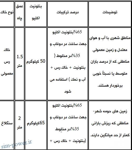 با توجه به مقاومت مخصوص زمین ، عمق چاه از حداقل 1.5 متر تا 3.5 متر و قطر