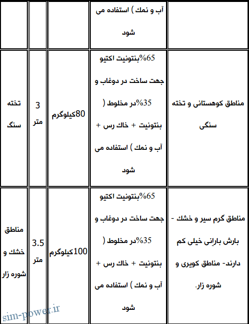 50*50*0.5 سانتیمترمکعب براي مناطق نیمه خشک مانند تهران و 70*70*0.5