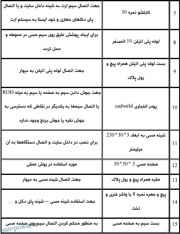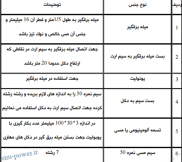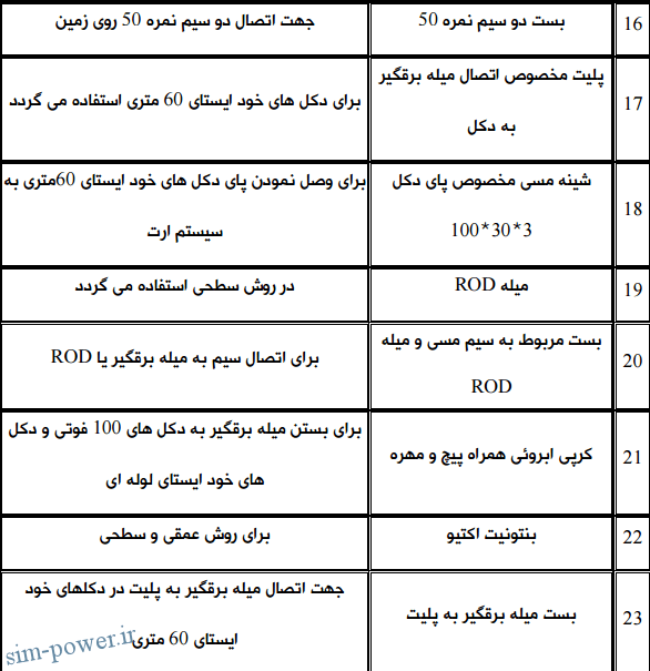 مصالح مورد نیاز و مشخصات آن براي اجـراي چـاه ارت (روش عمقـی ) و Rod کـوبی در