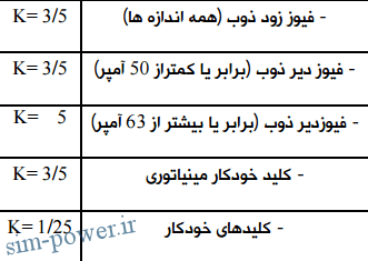 ضریب K در سیستم توزیع نیرو (شبکه هوایی یا کابلی تا کنتور و دو سیستم توزیع
