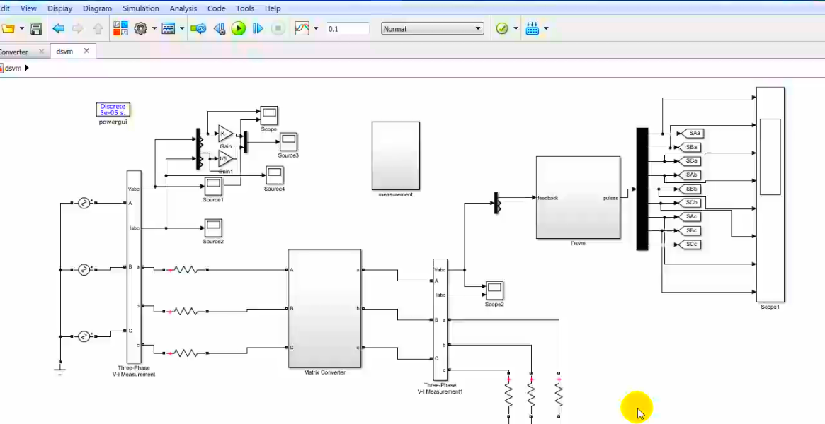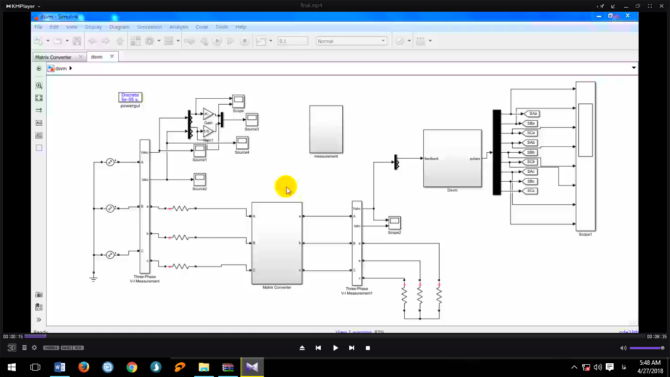 میخواهم مکانیزم یک را توضیح بدهم ابتدا اگر بخواهیم DSVM را پیادهسازی کنیم و به طور عملی آن را ببینیم نیاز هست که آن را به یک ماتریکسکانورتر یا به یک نوعی به اینورتر بیاییم متصل کنیم و نحوهی عملکرد DSVM را ببینیم.