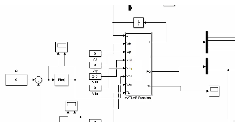 برای تغییر این ها می توانیم vdc(nominal) را در یک function بنویسیم وبعد از اجرای آنها به راحتی تمامی پارامترها می توانند تغییر کنند .بعد ازین مورد این گزینه را pi می کنیم و با یک iq این ها را با یکدیگرmux می کنیم و هر دو را تبدیل به یک سیگنال می کنیم.